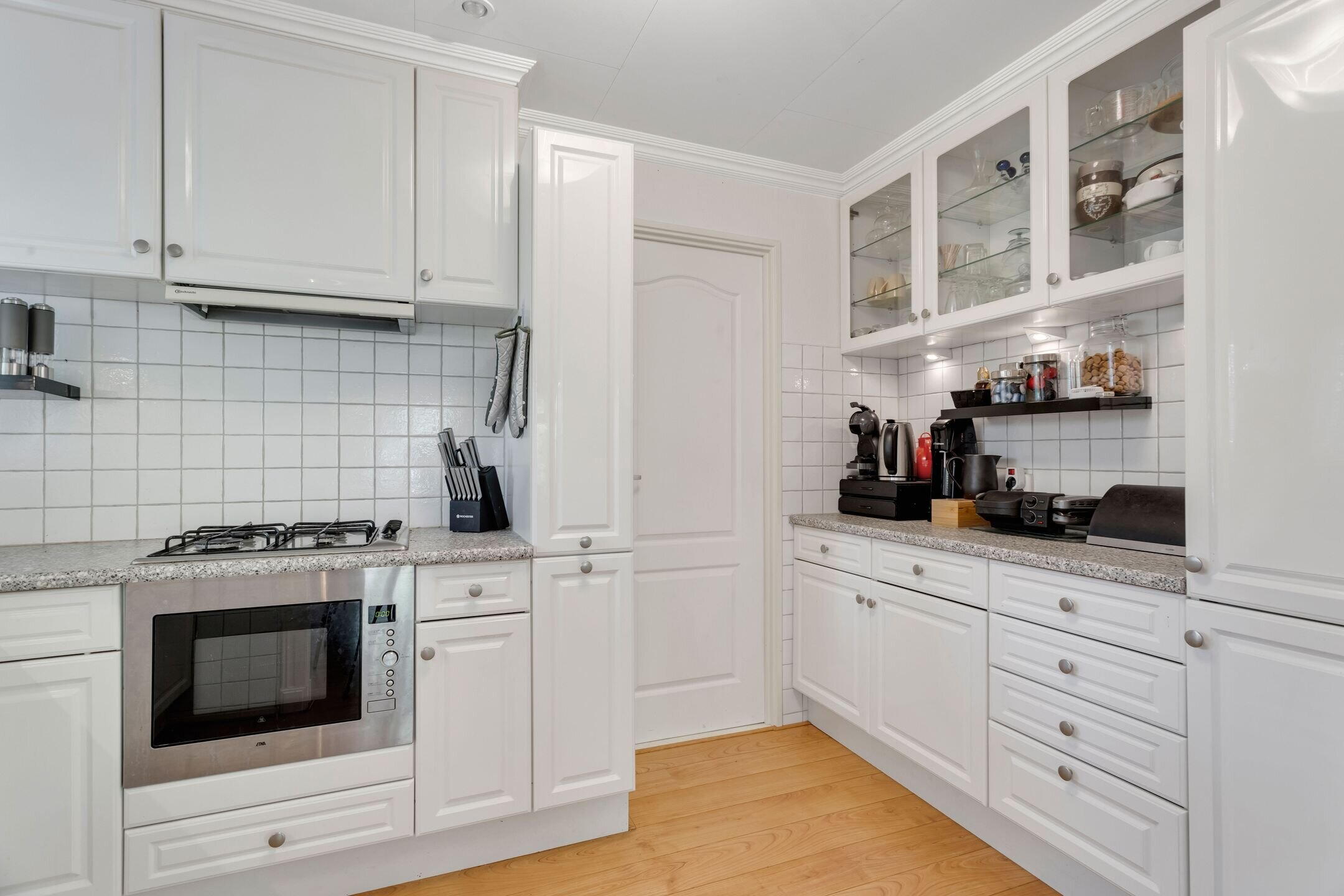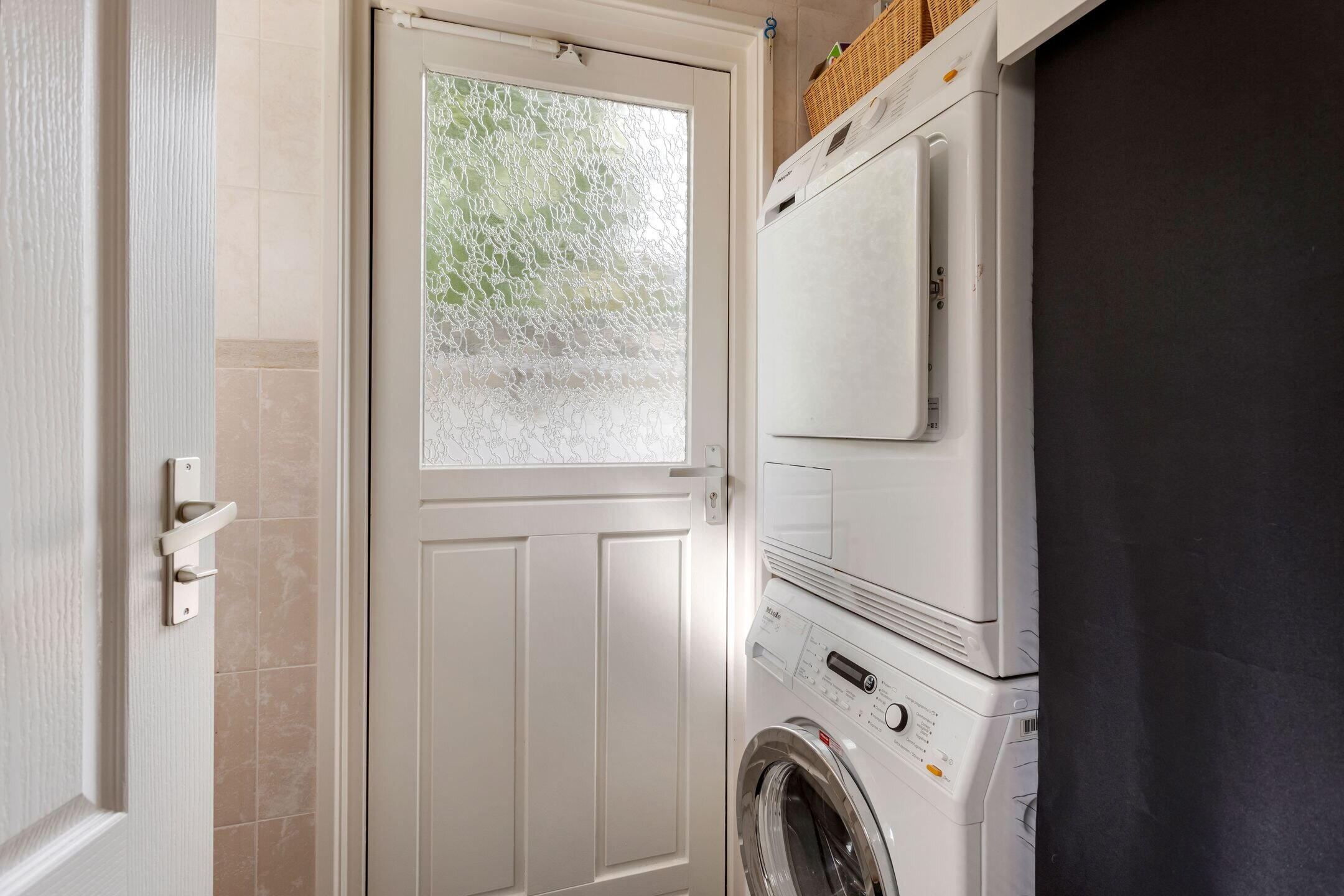 Op de begane grond vind je een ruime woonkamer met schuifpui, airco (koelen en verwarmen) en een sfeervolle Faber gashaard. De halfopen keuken is compleet uitgerust met 4-pits gaskookplaat, afzuigkap, combi-magnetron, koel-/vriescombinatie en vaatwasser. Daarnaast zijn er twee slaapkamers (waarvan één ook ideaal is als werkkamer), een badkamer met douche, wastafel en toilet, een apart gastentoilet en een praktische wasruimte.