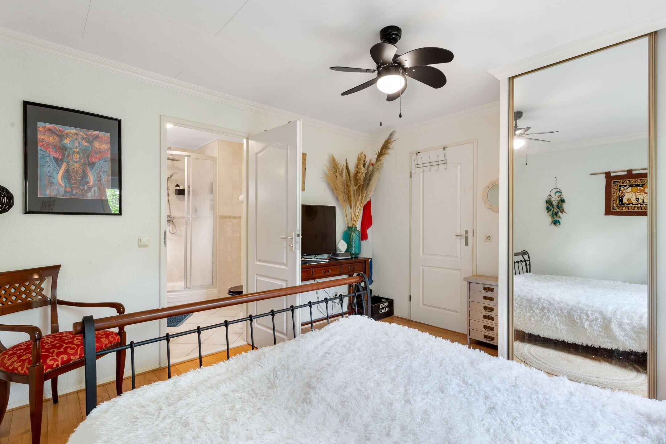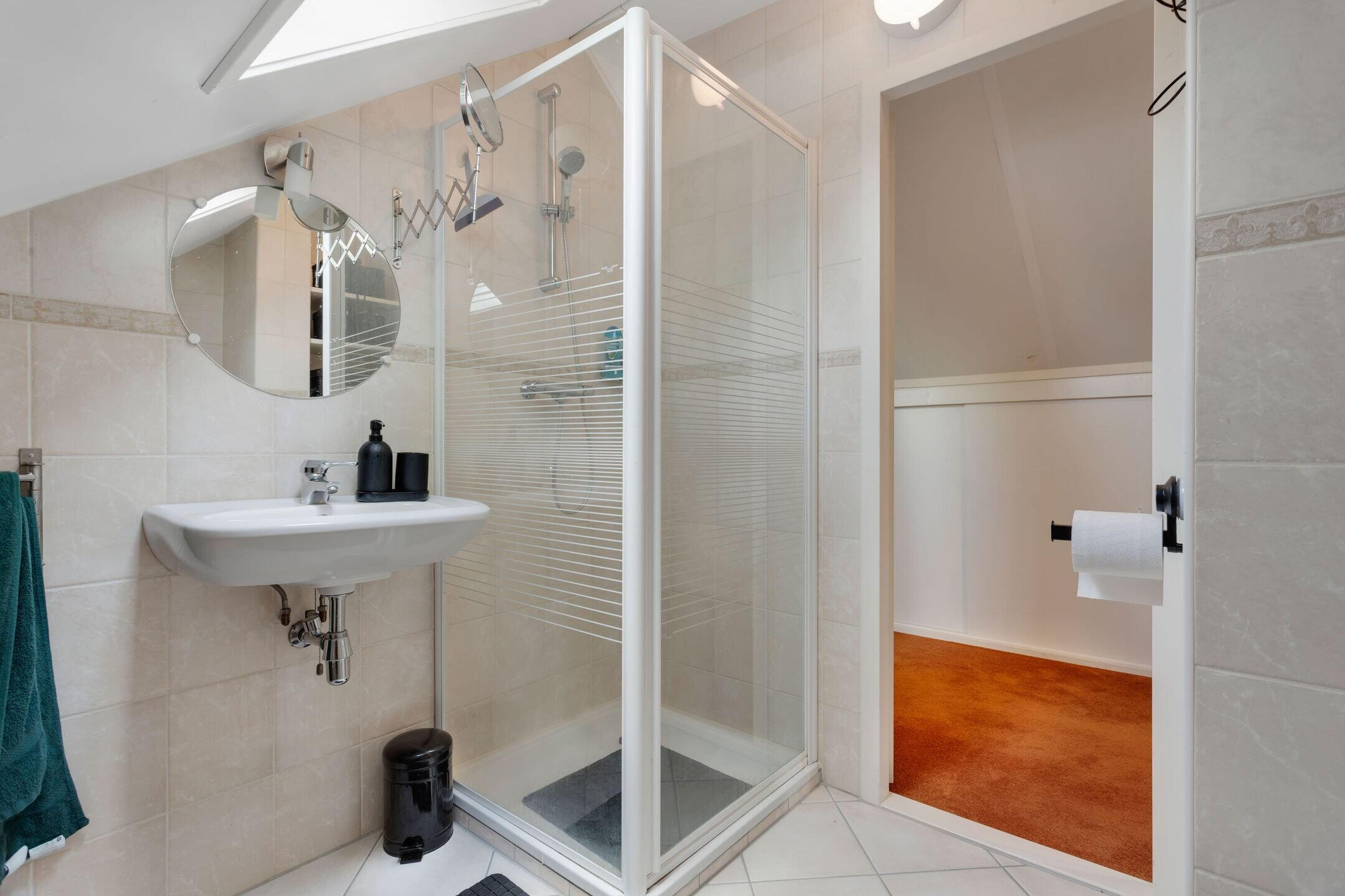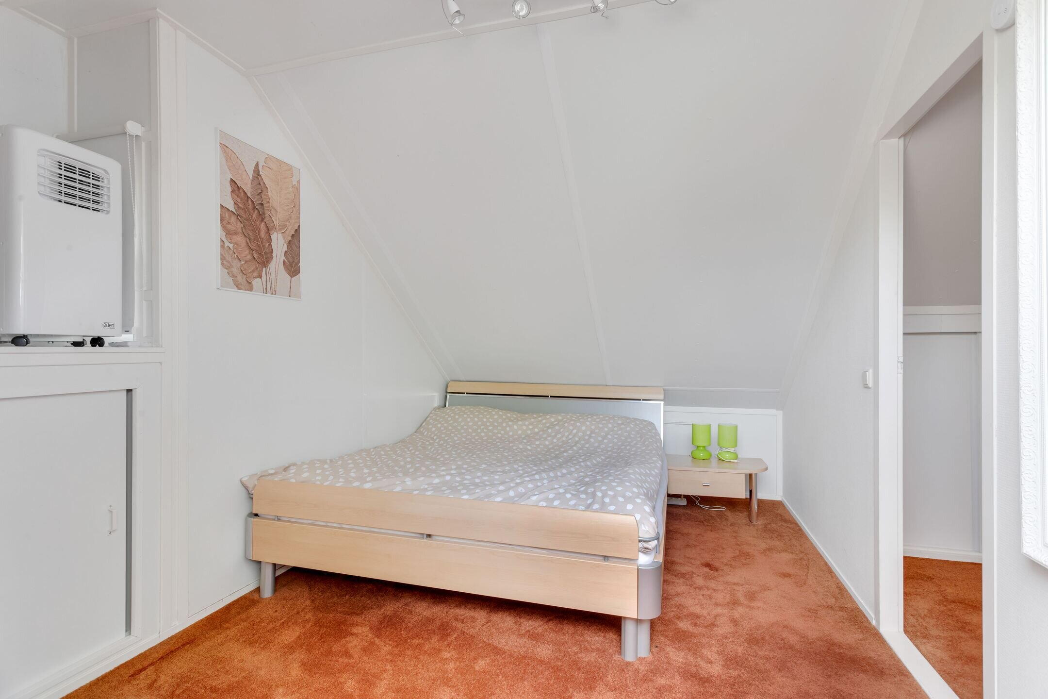 De eerste verdieping biedt nog eens twee ruime slaapkamers. De grootste slaapkamer is voorzien van een schuifwand, waardoor eenvoudig een derde slaapruimte te realiseren is. Ook op deze verdieping bevindt zich een tweede badkamer met douche, wastafel en toilet. Dankzij de goede isolatie en isolerende beglazing is deze recreatiewoning het hele jaar door comfortabel te gebruiken.